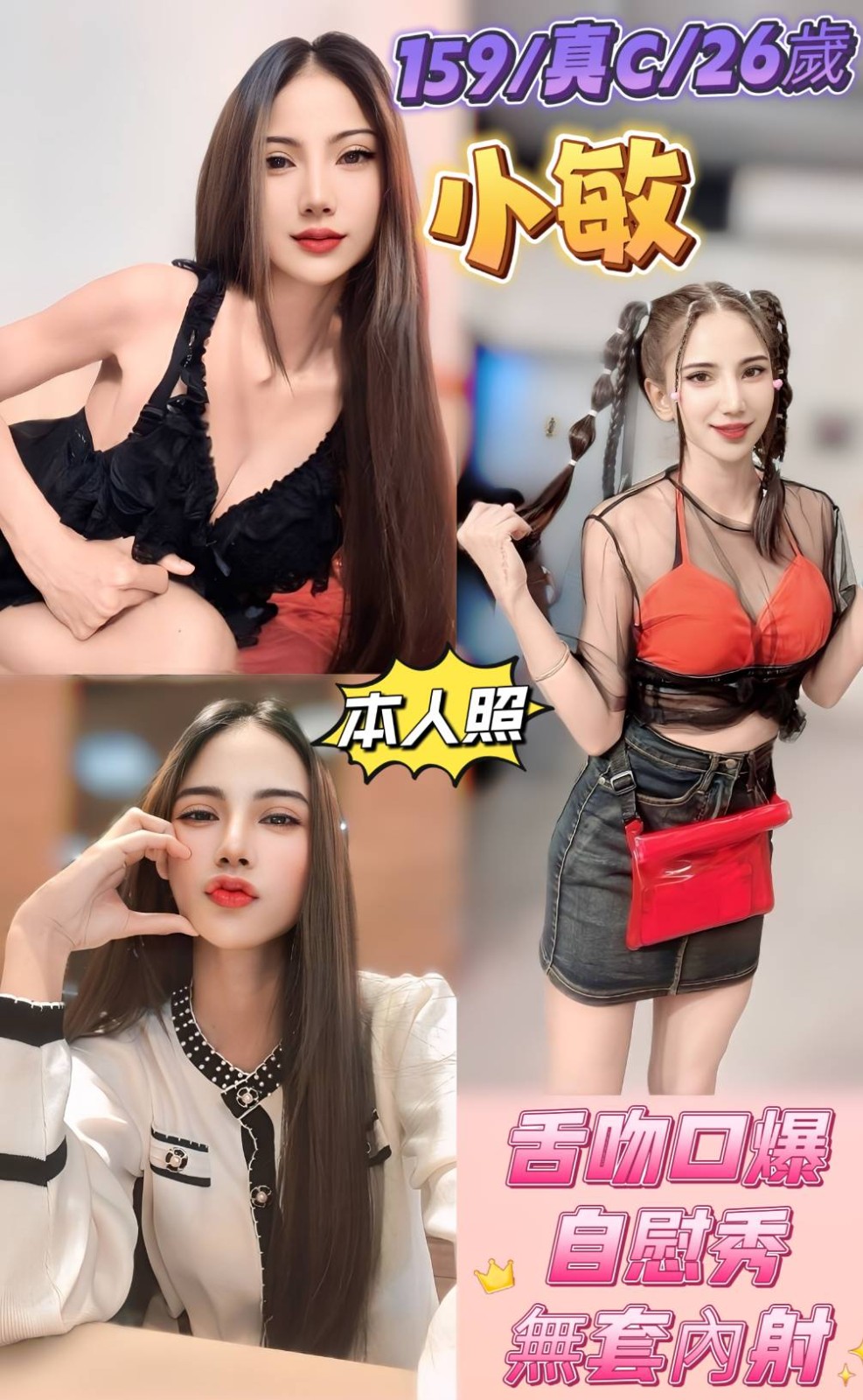 無套吹/戴套做/前後澡/品鮑/69/奶炮/胸推/屁推/按摩/親嘴/舌吻(視現場感覺而定)