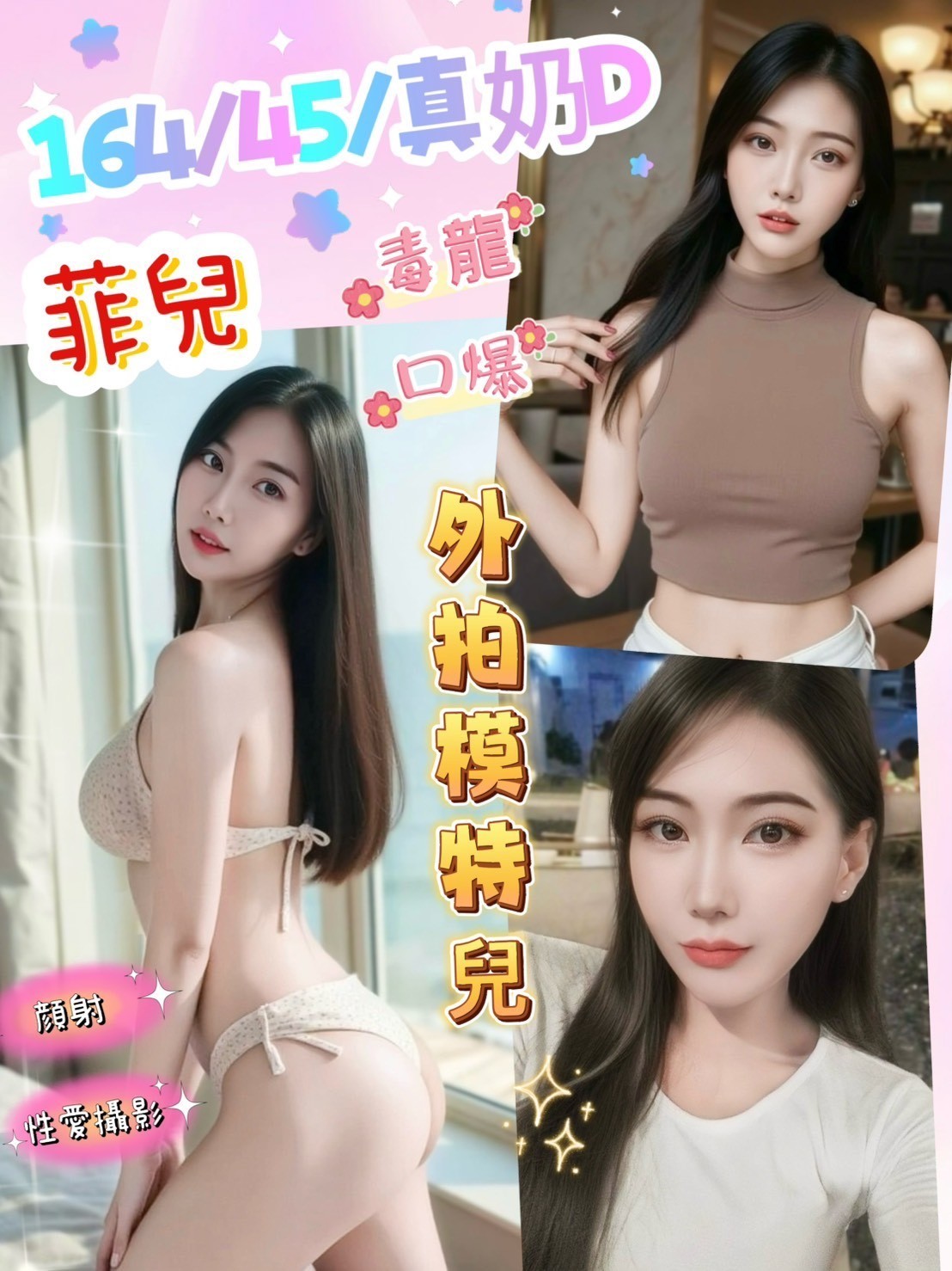 無套吹、鴛鴦戲水、舌吻、親親、品鮑、69、 按摩、奶炮、奶推、屁推、舔蛋、穿絲襪(需自備)、角色扮演(需自備)